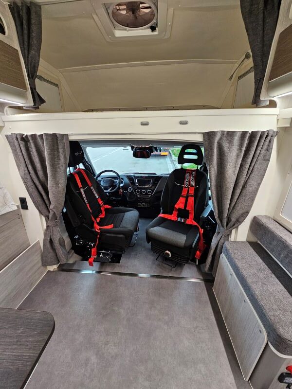 Frigo trivalente 150Lt. compressore,porta d’entrata larga , pedana idraulica per il sollevamento della carrozzina, bagno adattato alle proprie esigenze, gradino elettrico, garage posteriore , tendalino laterale elettrico , 2 oblò MaxFan 12v , 2 pannelli fotovoltaici da 180W, sollevatore a soffitto , bagno accessibile , sedili con ribaltine, comandi guida Kivi , gruetta di spostamento istallata nel garage.