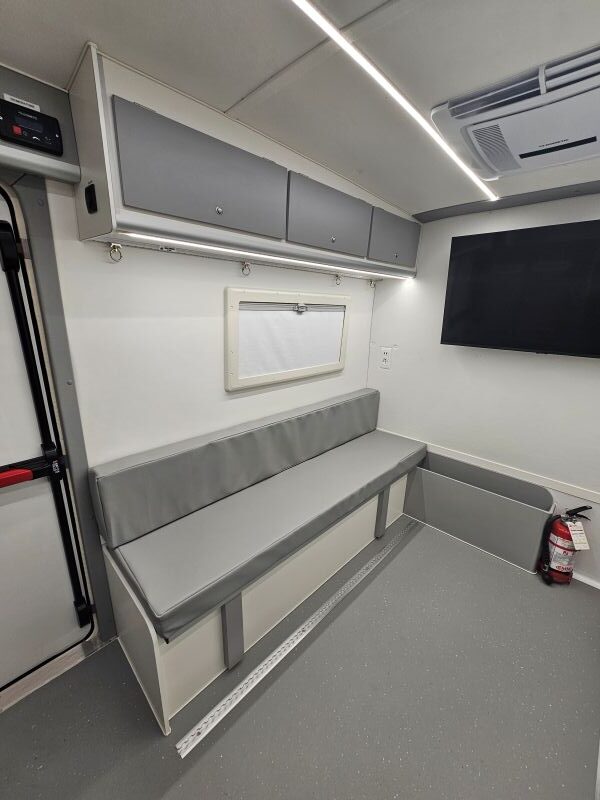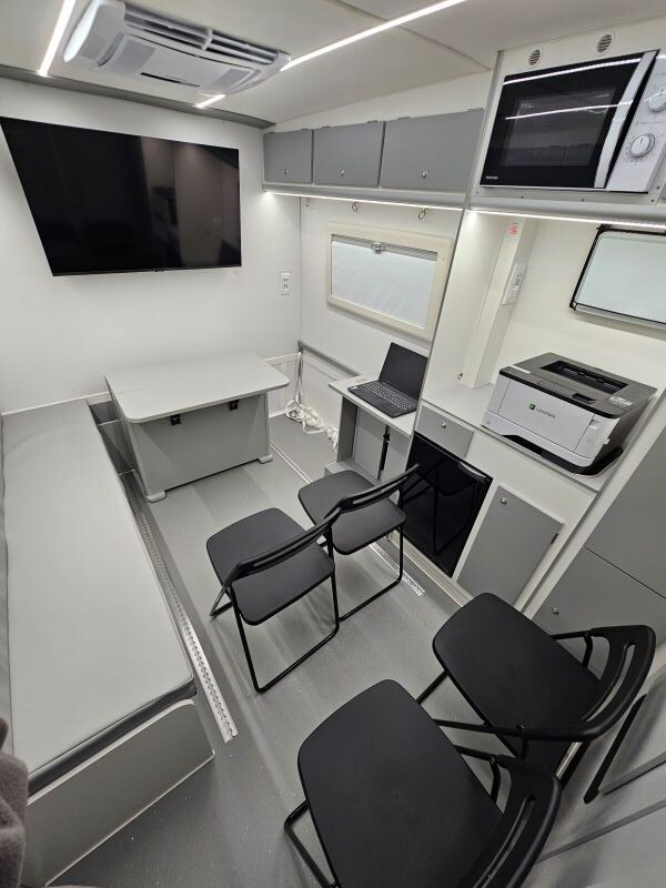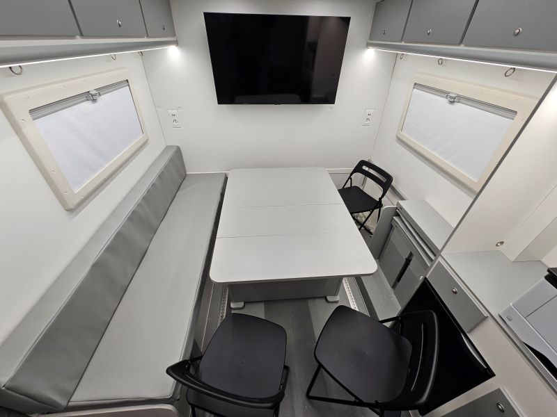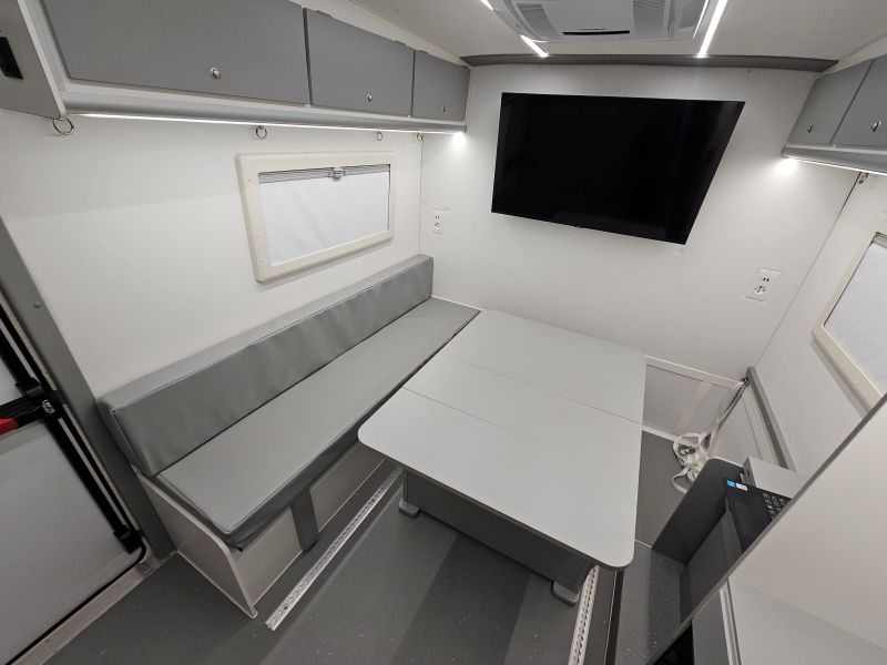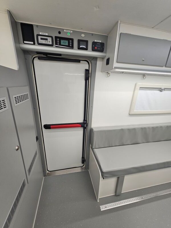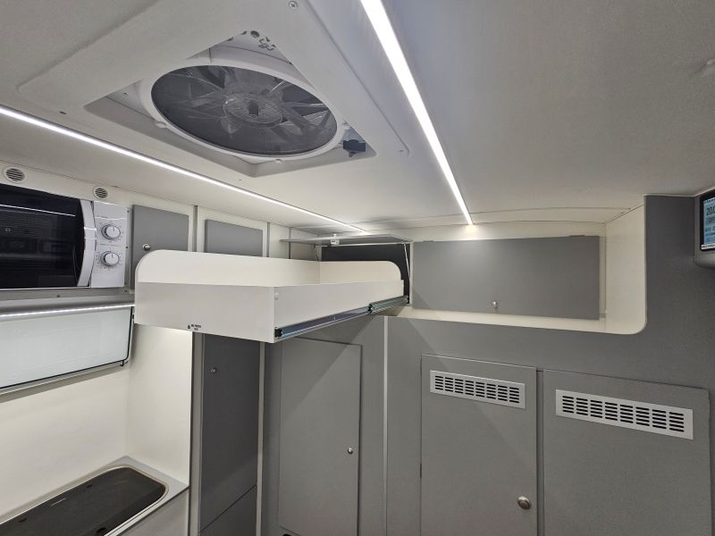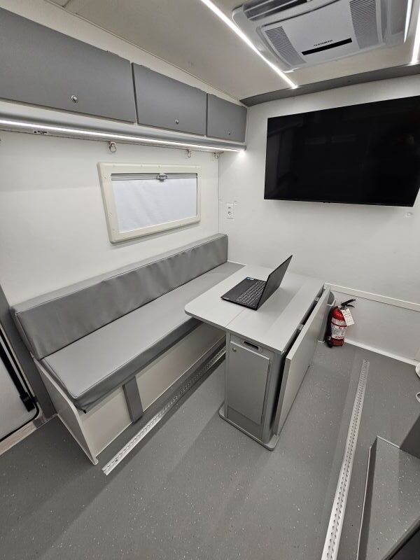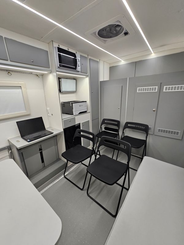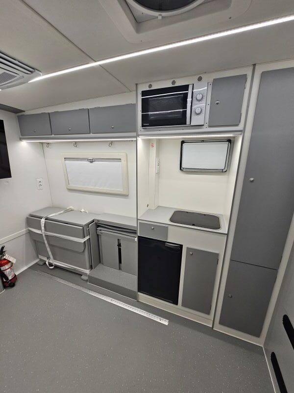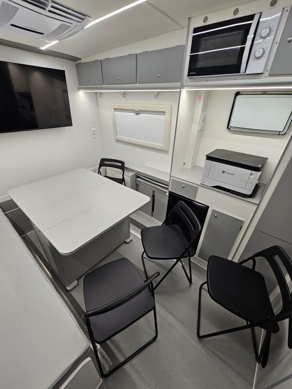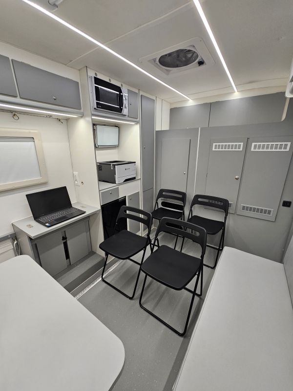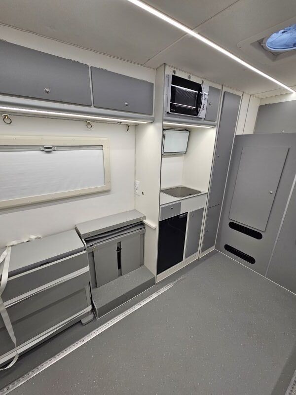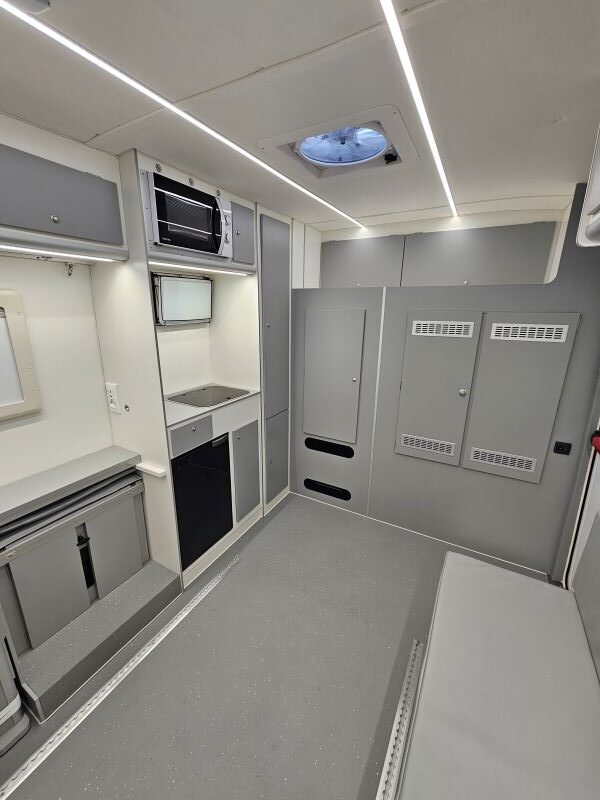 Per il nucleo dei Carabinieri TPC Tutela Patrimonio Culturale con il patrocinio del Ministero della Cultura abbiamo realizzato un Ufficio Mobile su base Iveco Daily 70 180 4×4 doppia cabina con 7 posti viaggio per il trasporto di tutti i componenti della Missione , e abbiamo installato la Nostra Esclusiva Carrozzeria monoscocca dal designe unico e al Suo interno lo abbiamo strutturato come ufficio mobile polifunzionale , in quanto può ospitare per call , meeting , formazione , briefing fino a 10 persone , dotato di riscaldamento autonomo , acqua calda istantanea, smart Tv , rete internet, impianto al litio da 300A con inverter da 3kw , gruppo elettrogeno da 2.9kw , tendalino elettrico , compressore , ruota di scorta con vericello automatico , vericello anteriore WARN , antenna TV satellitare , Torre Faro pneumatica e tanto spazio di stivaggio . Un veicolo unico nel Suo genere adatto ad ogni tipo di terreno e situazione.