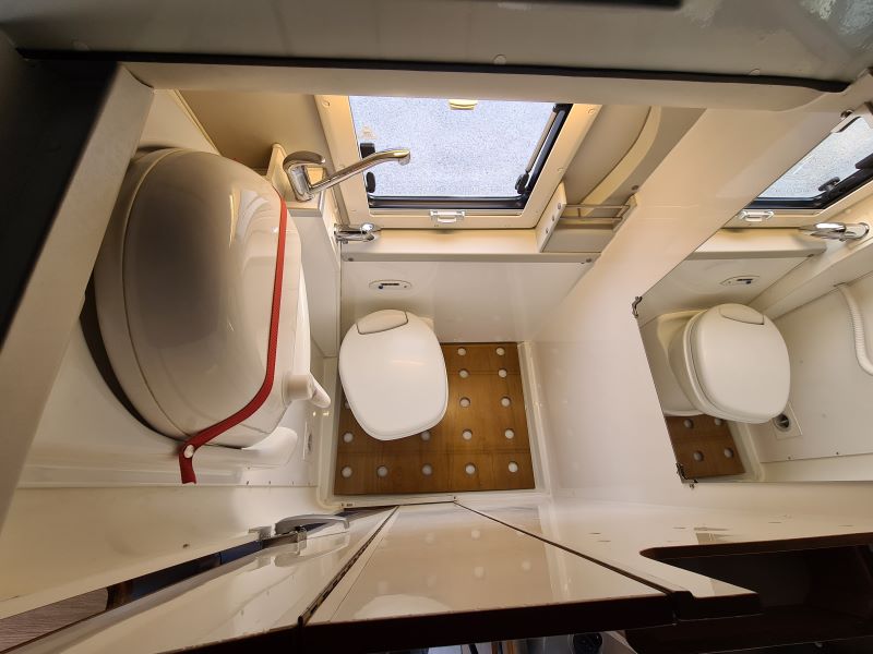 Riscaldatore Aqua-Hot, 3 pannelli Fotovoltaici NDS 105W, avvisatore fughe gas, porta bici, vano toilette con doccia, gradino elettrico laterale, antifurto.