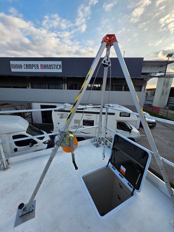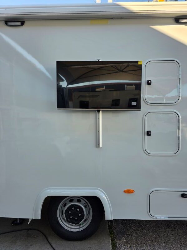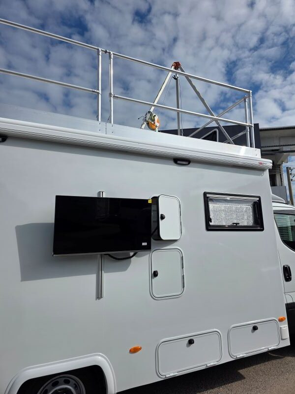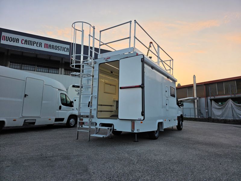1 condizionatore a cassapanca con aria canalizzata, riscaldamento Airtronic Autotherm D4, 4 piedini di stazionamento elettro idraulici autolivellanti, 1 porta d’entrata con maniglione anti panico, 1 gradino elettrico, 2 finestre Dometic S4 , Tendalino laterale Thule , sospensioni ad aria Antenna internet Wi-Fi