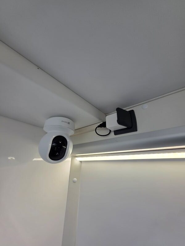 Mobili rifiniti in laminato bianco.
